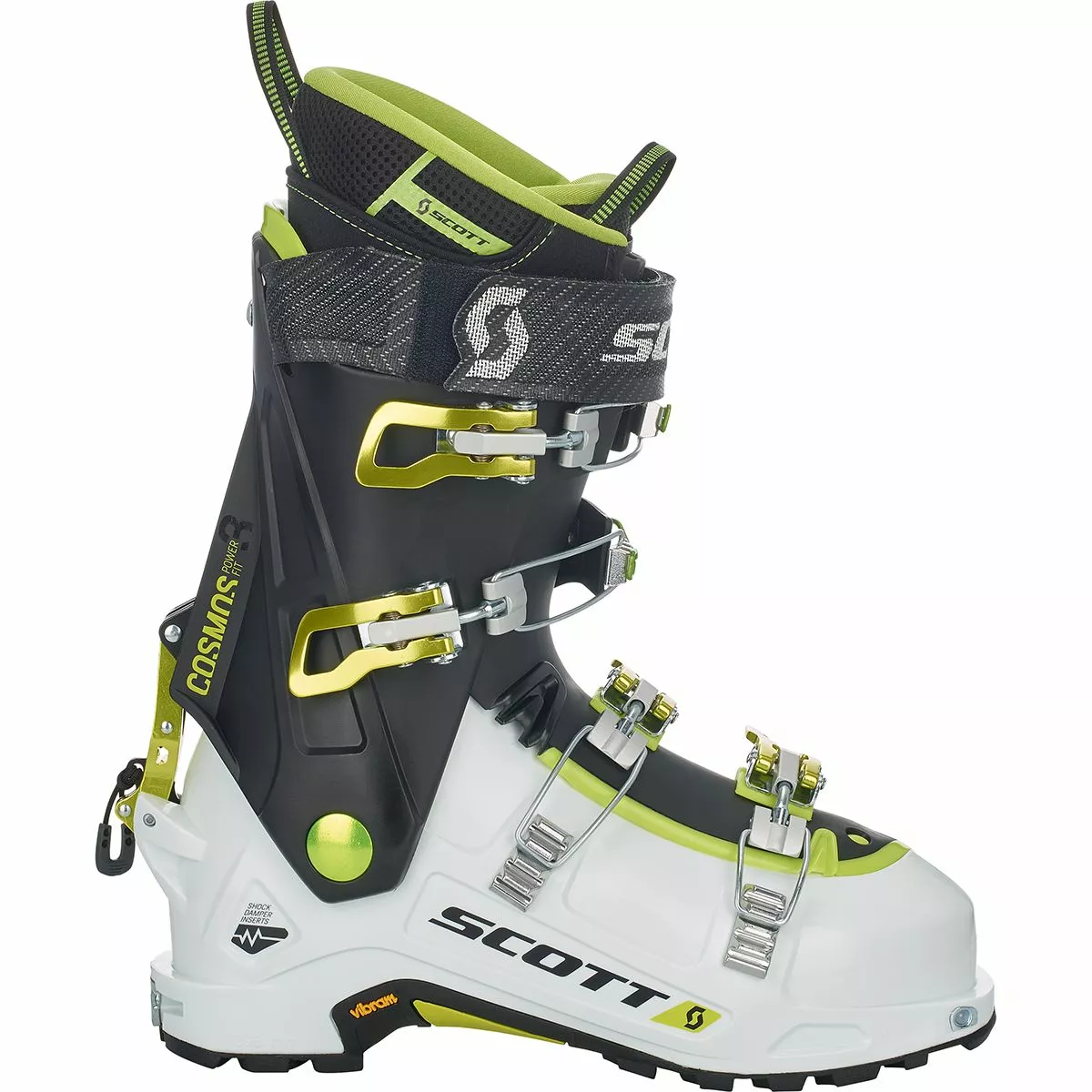 Don’t get the impression that it’s a one-dimensional downhill boot, either. It has 60 degrees of cuff rotation for easy ankle articulation, a rugged ski/walk switch, and an aluminum lean/lock bar that allows both the shell and the cuff to move freely for a more natural touring motion. Scott’s also redesigned the tech fittings, making them Dynafit certified for an easy and solid connection with Dynafit tech bindings. We’d also be remiss to not mention the PWR Lite liner, which is seamless, fully thermo-moldable, and it has a reinforced tongue for plenty of smooth-flexing power.