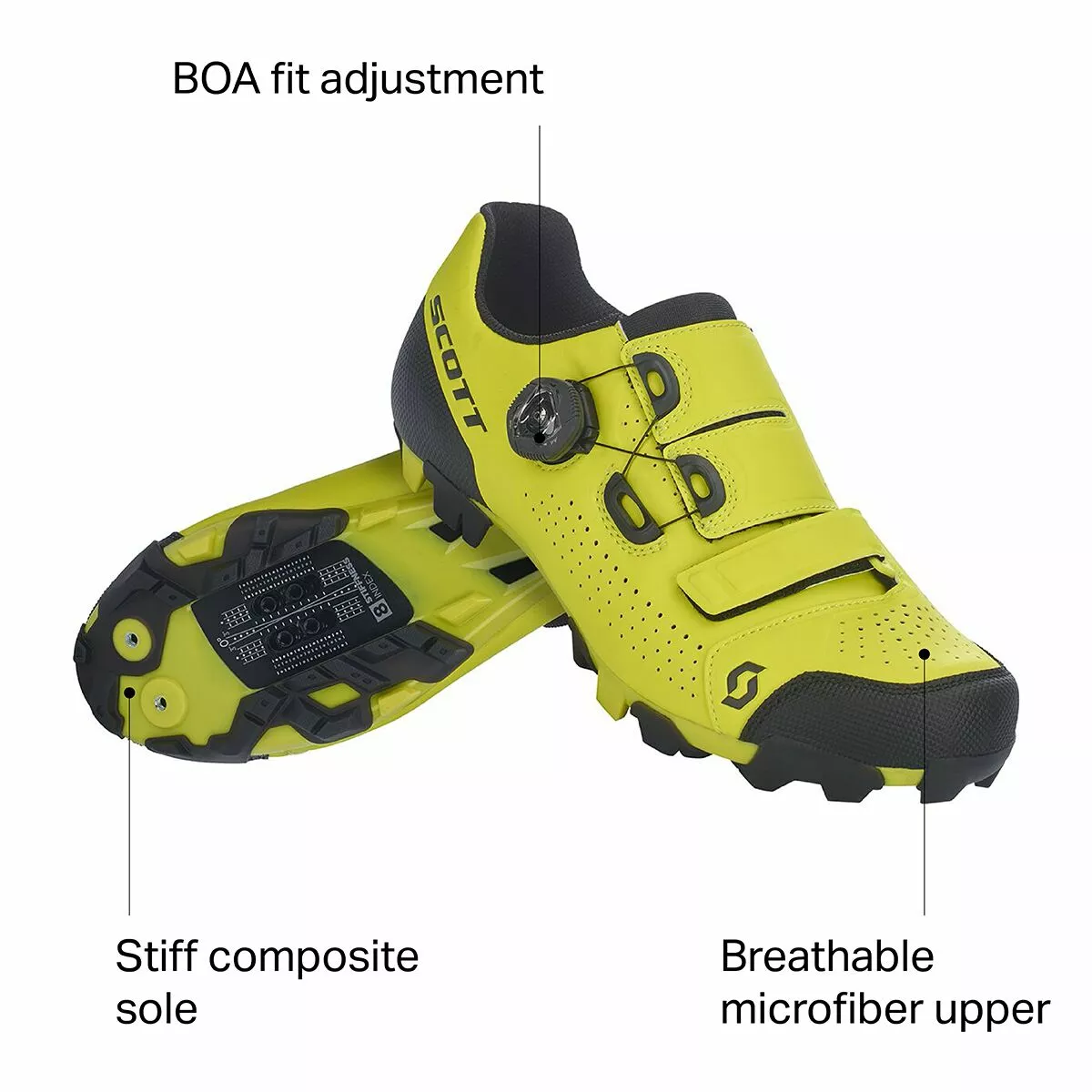 Send it up switchbacks and blast through rolling miles of singletrack with the quick-reacting power of Scott’s Men’s MTB Team Boa Cycling Shoe. Built for adventure, the MTB Team Boa’s are versatile and ready to tackle miles at your local trail network for midweek XC race night, or push further up the mountain to discover new and challenging trails laced with root lattices and rock gardens. They feature a stiff sole for putting your power to good use, and flexible uppers that give your feet a comfortable hug while you pump rollers, and push up climbs.