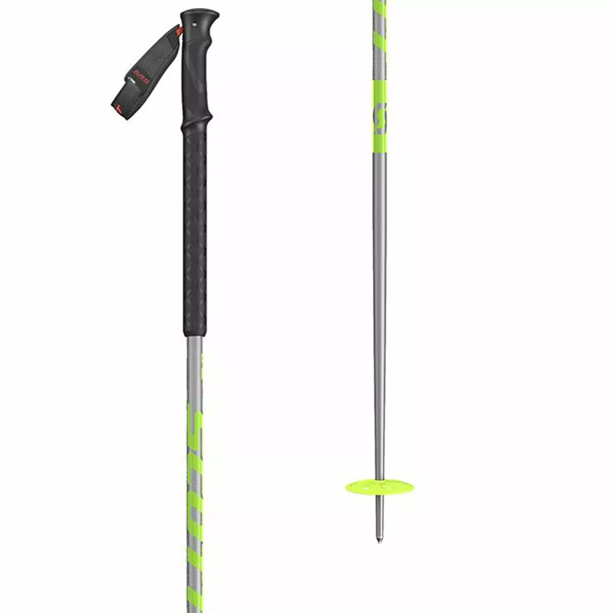 Designed for backcountry travel, the Scott Riot 18 Rubber Ski Poles feature a long rubber grip zone so you can optimize your hand position while skinning, bootpacking, or traversing across uneven terrain. The thick, durable aluminum alloy shaft provides long-lasting durability and stability with every pole plant, and the carbon diamond tip provides a reliable grip in firm snow. Scotts S.R.S strap releases from the pole grip when it’s tensioned, which enhances safety during a fall.