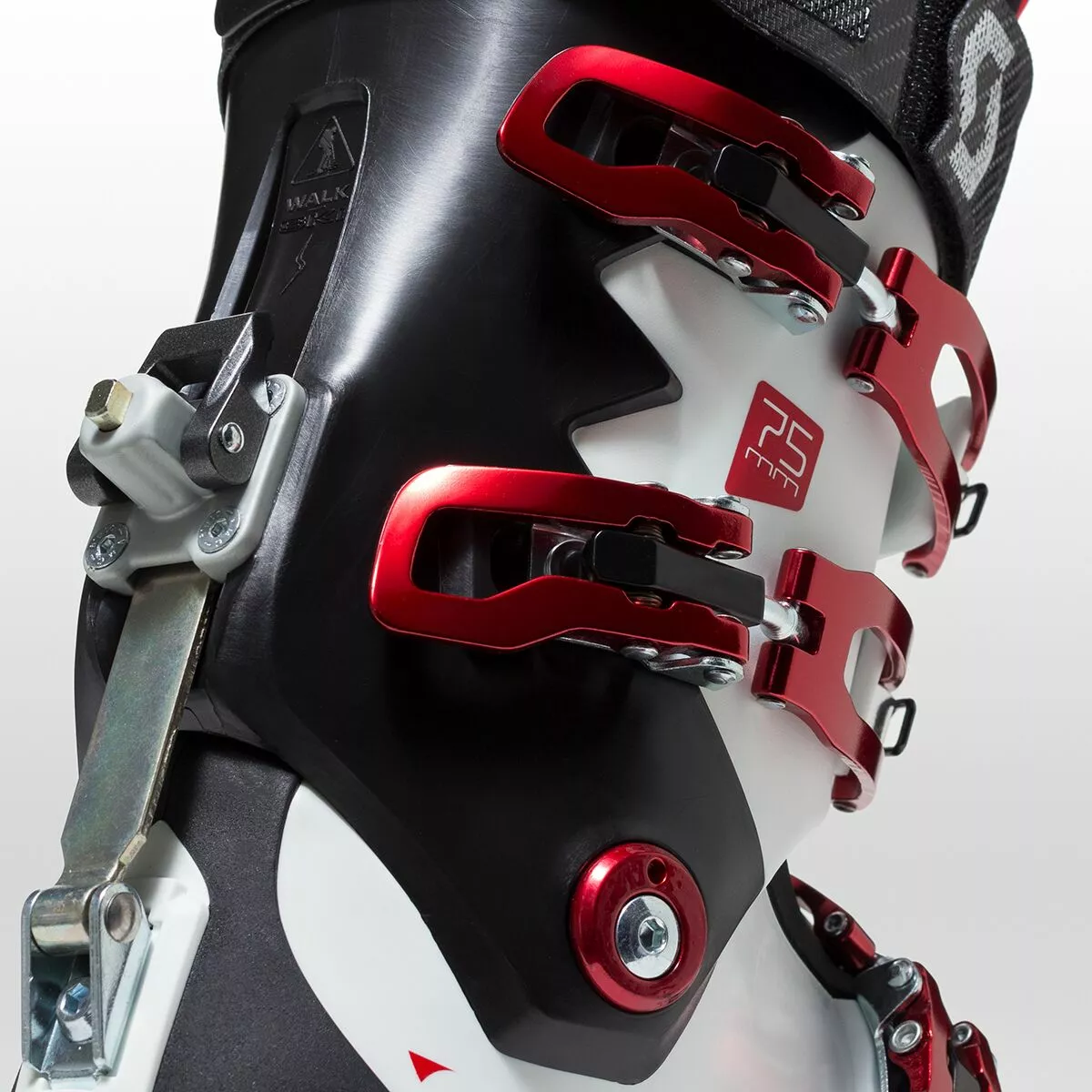 With a burly mountain-man flex of 130, overlapping PowerWrap construction, and a big ol’ power strap just for chuckles, you can ski the Voodoo as hard as you want without powering through the front and ending up forehead-down on the snow. It has an adjustable spoiler to help you customize the 13-degree lean angle, and an asymmetrical bellows design for the proper flex. Scott also used four separate injections to create the lower shell, making a boot that’s laterally stiff so you can power through turns without tipping over or twisting over your ski.